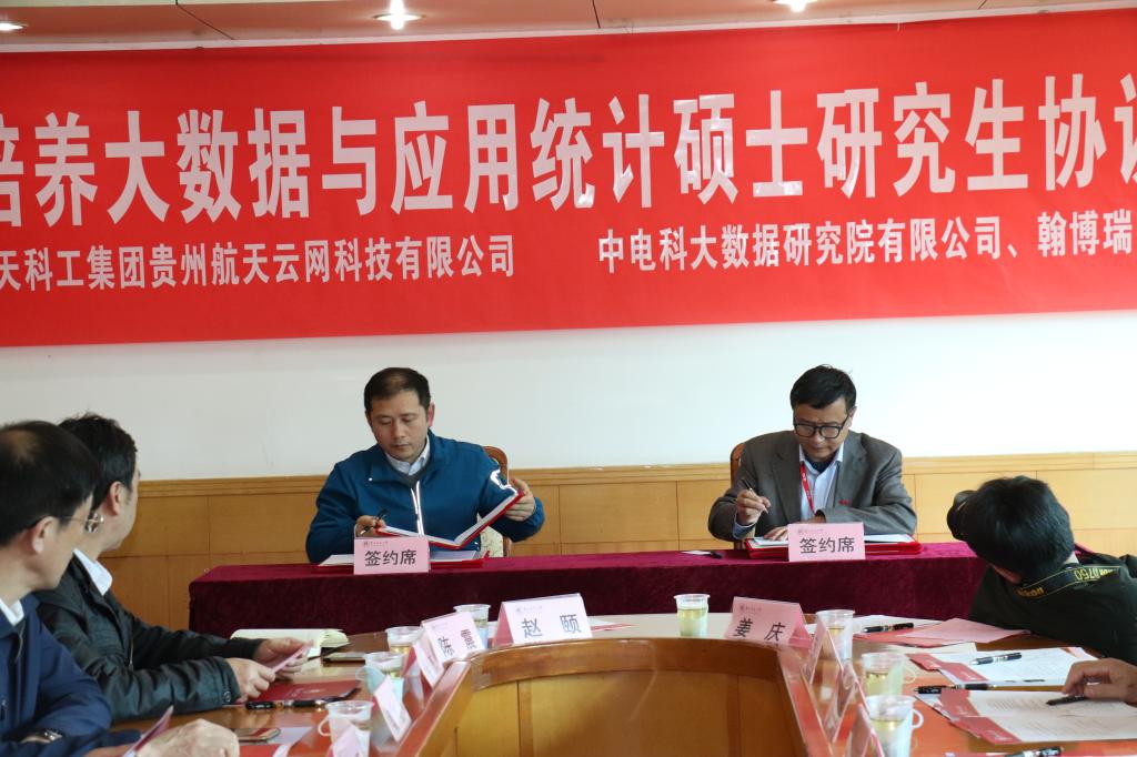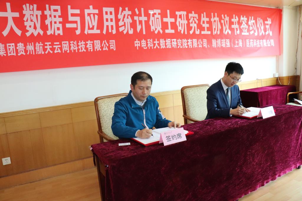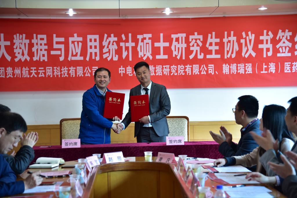 随后,乙引代表公司分别与中电科大数据研究院有限公司、中国航天科工集团贵州航天云网科技有限公司、翰博瑞强(上海)医药科技有限公司代表签订协议书,正式开启公司与大数据企业协作培养大数据与应用统计硕士研究生里程。
