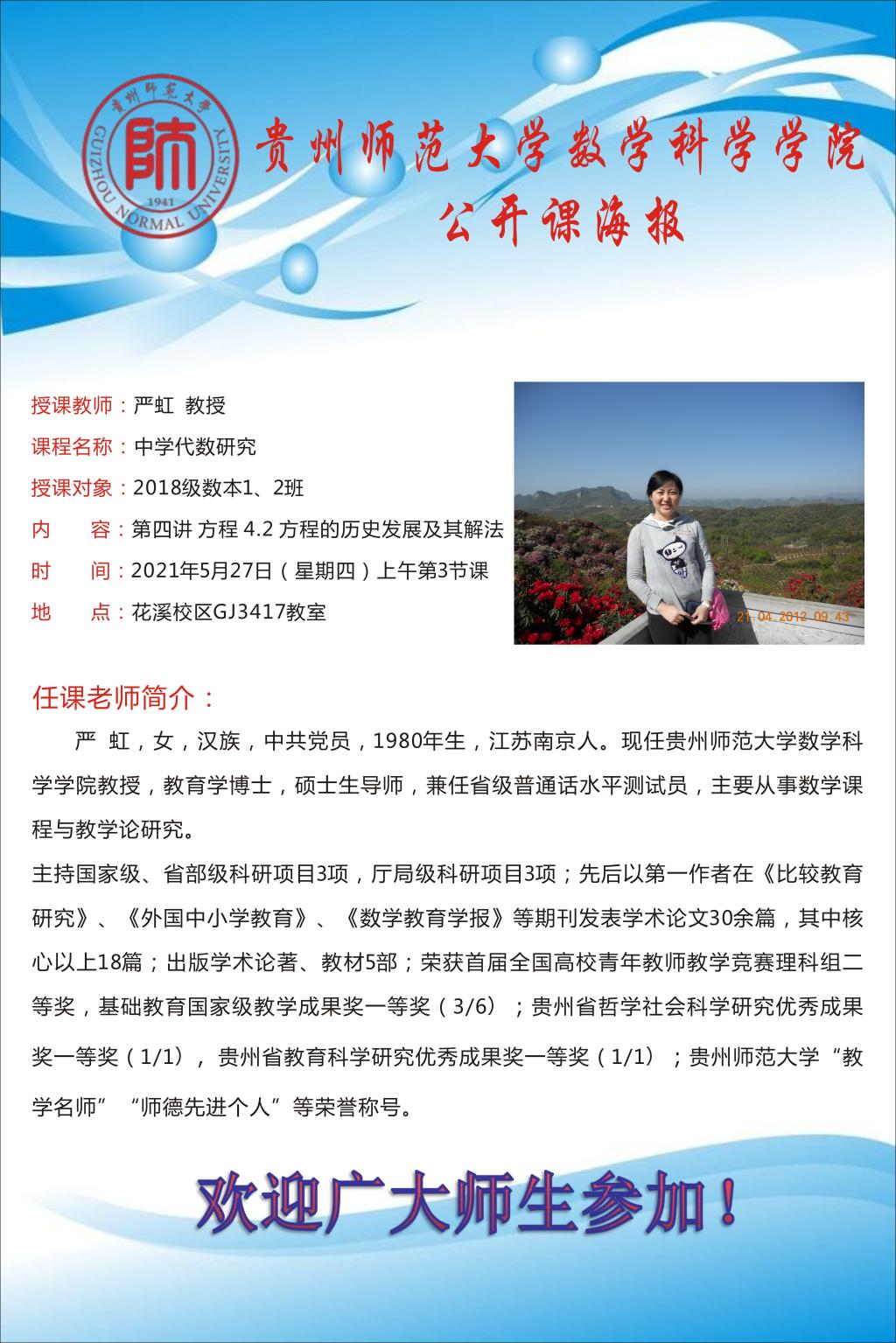 伟德国际1946公开课预告 “方程4.2 方程的历史发展及其解法”