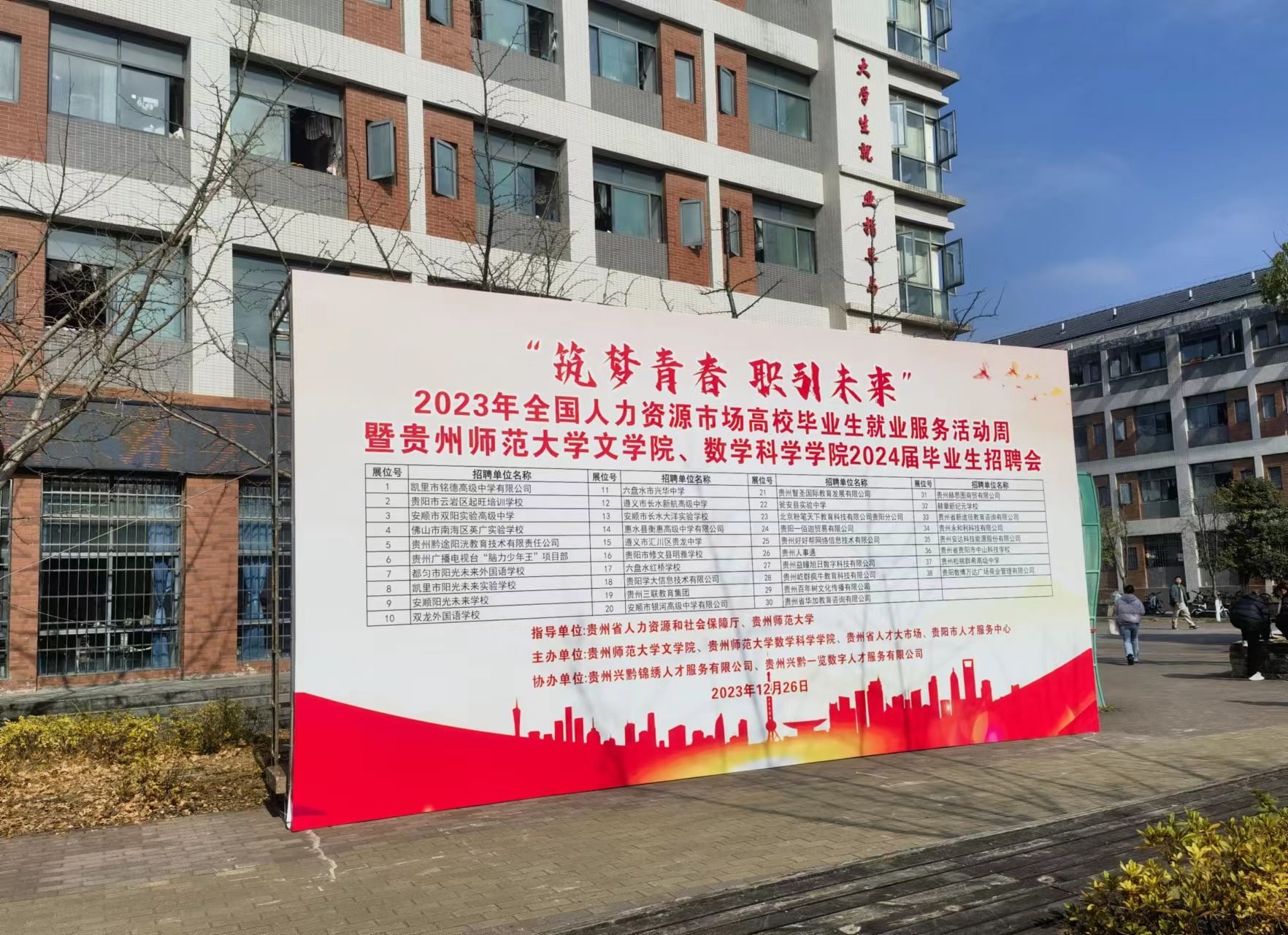 为认真学习贯彻党中央、国务院,省委、省政府,省委教育工委、教育厅和公司“稳就业”工作部署精神,12月26日上午,伟德国际1946、文公司、贵州省人才大市场、贵阳市人才服务中心联合在公司东校区就业服务中心举办“筑梦青春,职引未来”2024届毕业生招聘会。本次招聘会由省人力资源和社会保障厅、公司招生与就业指导处指导,贵州兴黔锦绣人才服务有限公司,贵州兴黔一览数字人才服务有限公司协办。邀请到了长水教育集团、贵州三联教育集团、贵阳数博万达广场商业管理有限公司等38家用人单位来校揽才,提供岗位800余个。