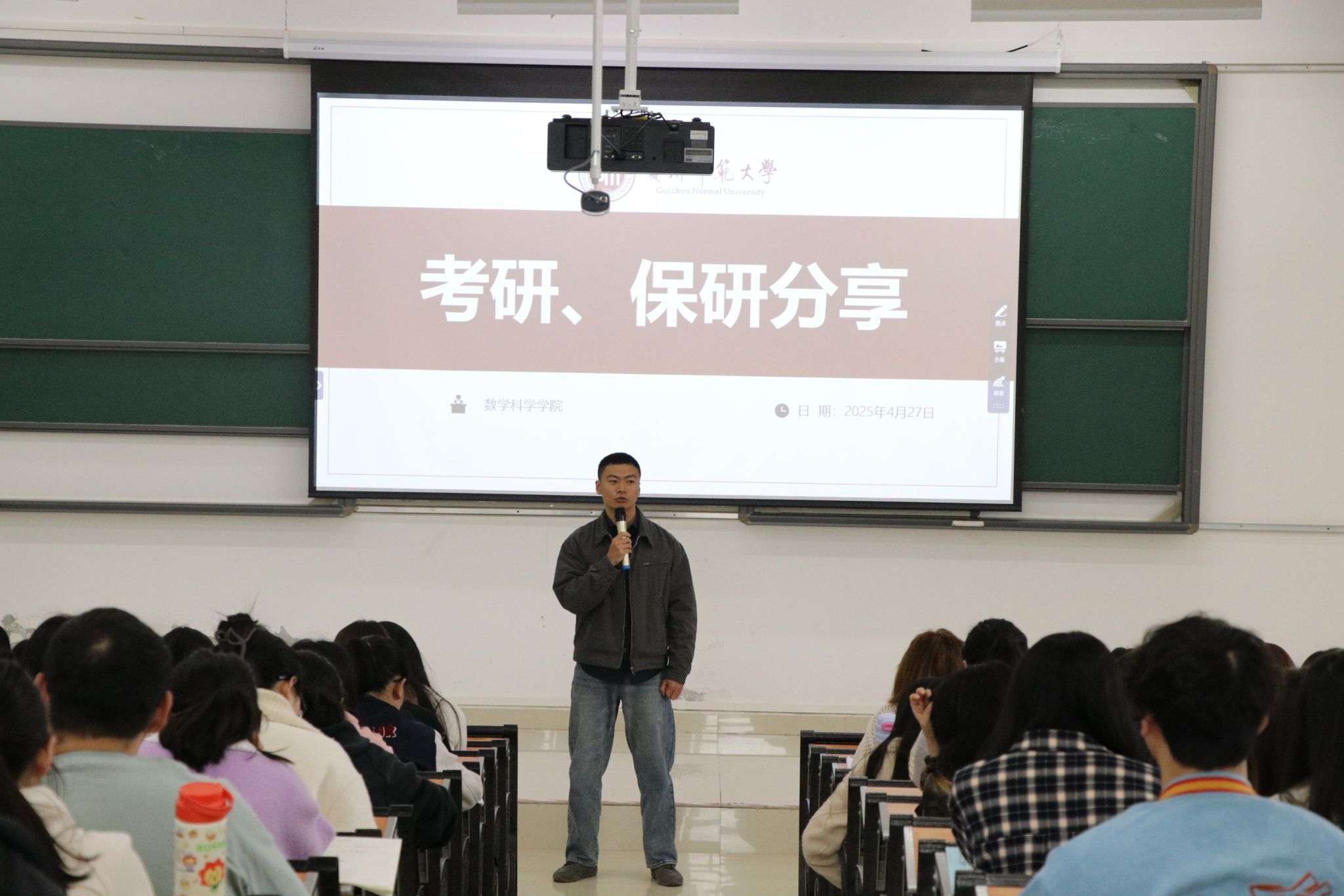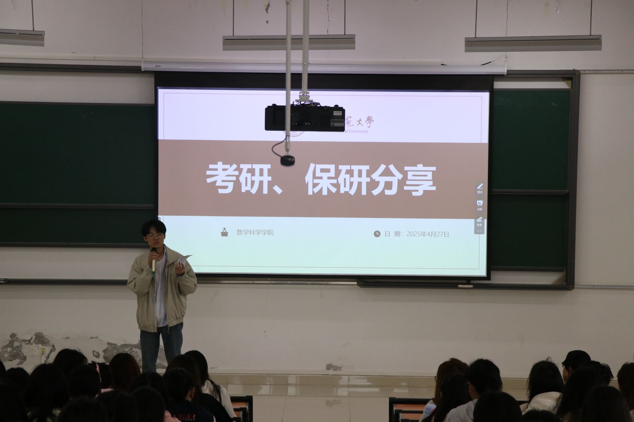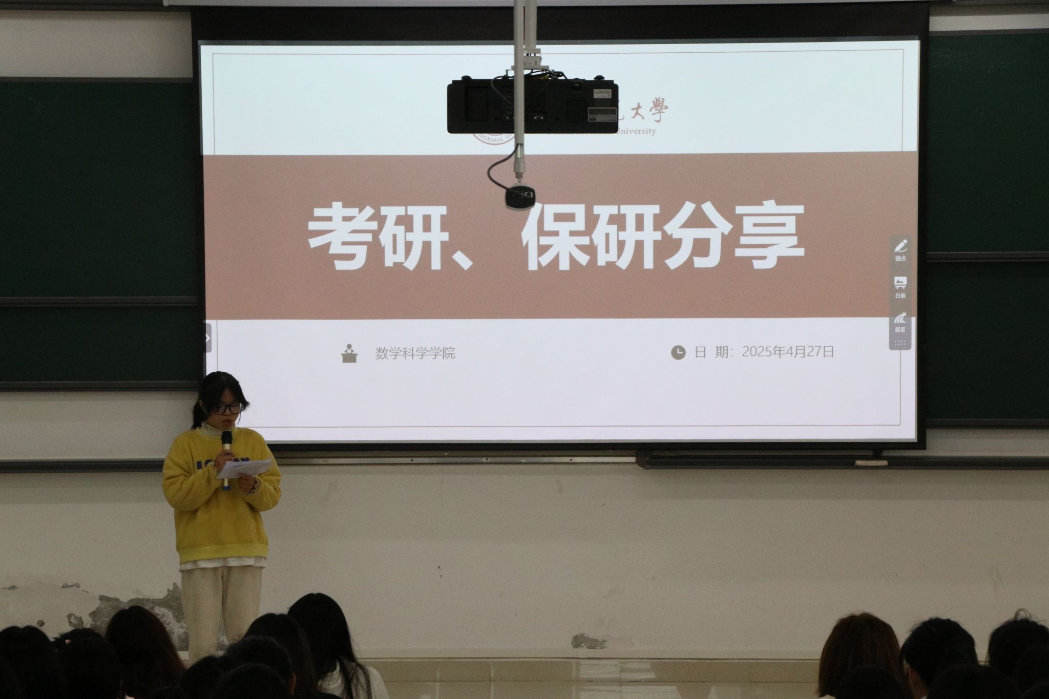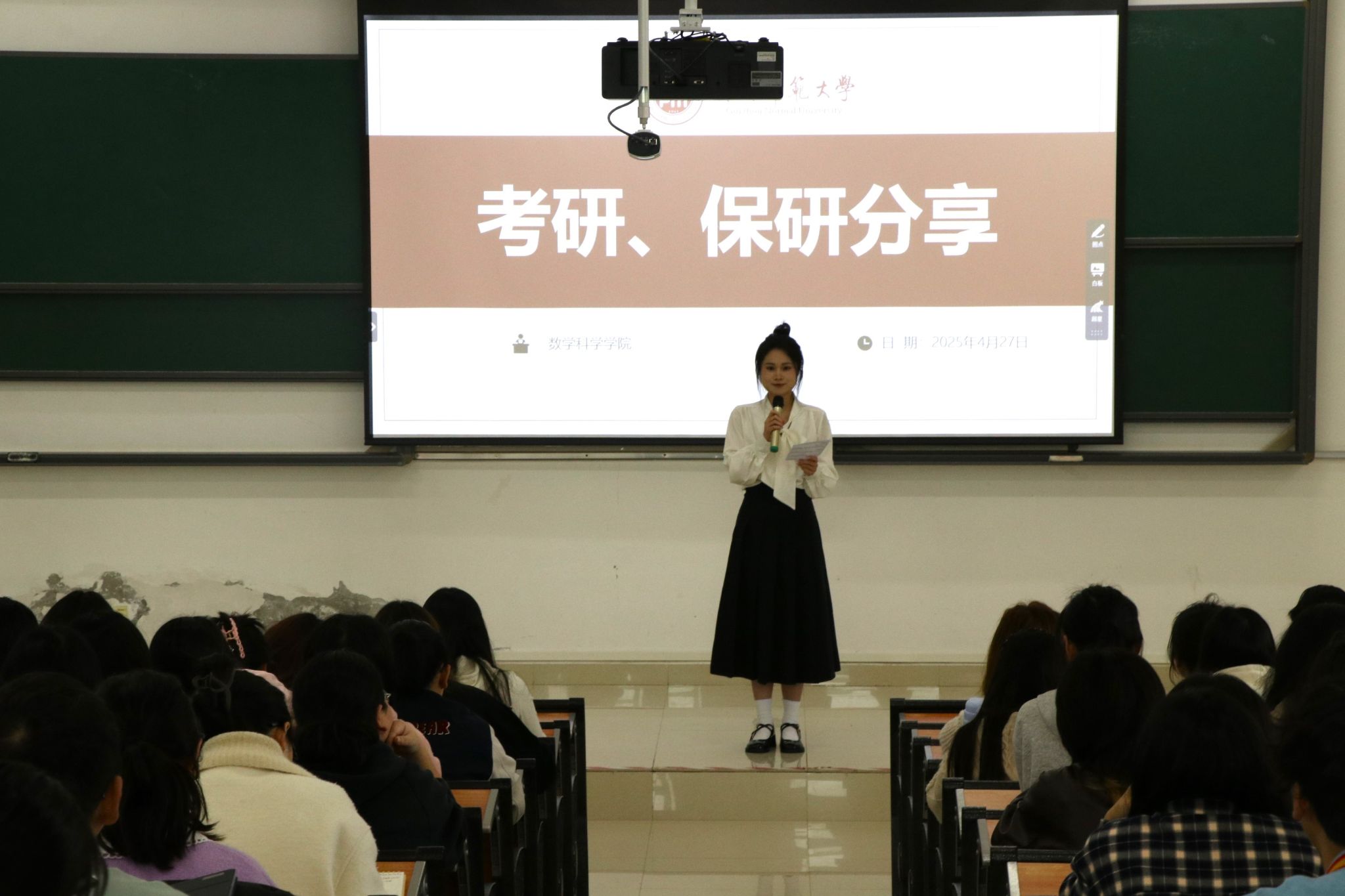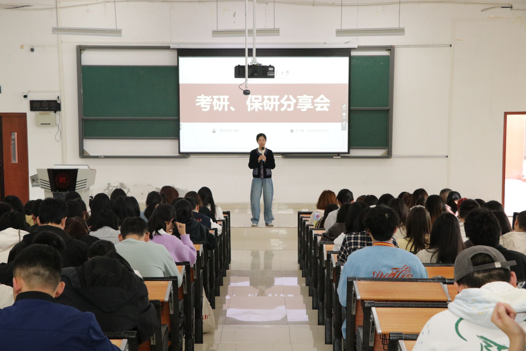 为深入推进学风建设,全面落实“三全育人”工作要求,助力员工明确考研、保研方向,科学规划备考路径,充分发挥优秀学子的示范引领与朋辈帮扶作用,伟德国际1946联合“三学一立”社团,于4月27日下午在公共教学楼6401教室精心组织了一场“考研、保研经验分享会”。此次活动是公司学风建设系列活动的重要一环,以及“三全育人”体系中全员育人、全程育人、全方位育人的一次生动实践。公司党委副书记江剑虹、22级辅导员徐彬、23级辅导员廖清水、2021级优秀本科毕业生代表以及2022级全体本科生积极参与。活动由2022级信息与计算科学专业杨蓝同学主持,现场气氛热烈,同学们满怀期待,共同奔赴这场知识与实践交融的“干货”盛宴。