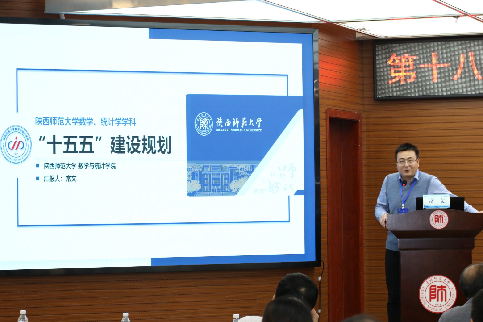 陕西师范大学数学与统计公司副经理常文介绍“陕西师范大学数学与统计公司‘十五五’建设规划”,规划聚焦于对内优化学术团队、拓展医学数学等交叉学科方向,对外则着力加强国际交流,务实推进中英合作办学,以双向发力驱动学科内涵式发展。