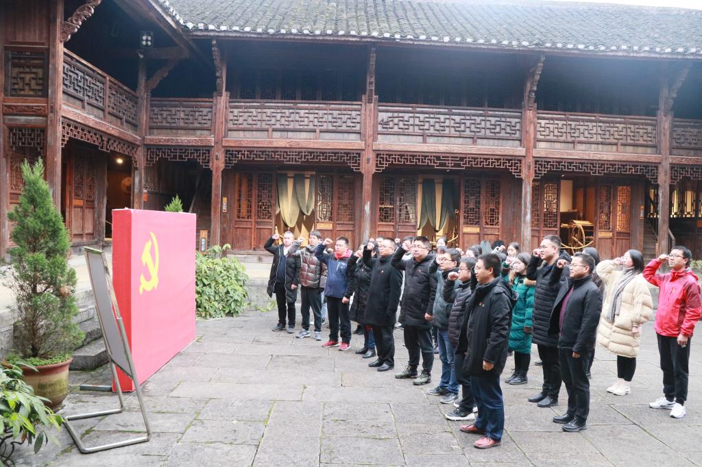 参观完纪念馆,大家来到猴场会议原址,通过身临其境感受和体会党领导中国革命不断走向胜利的艰难过程,面向党旗重温入党誓词,使大家从思想上、政治上、行动上更加增强“四个意识”、坚定“四个自信”、做到“两个维护”,不忘教育报国初心、牢记为党育人、为国育才使命。