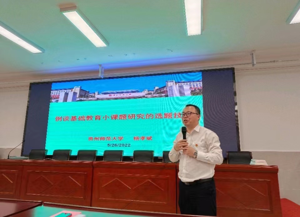 数学教育研究所党支部书记、所长杨孝斌为贵安附属初中全体教师作题为《例谈基础教育小课题研究的选题技巧》的专题讲座。