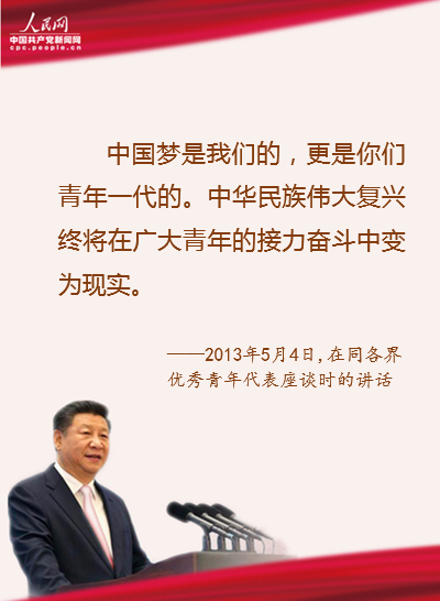中国梦是我们的,更是你们青年一代的。中华民族伟大复兴终将在广大青年的接力奋斗中变为现实。