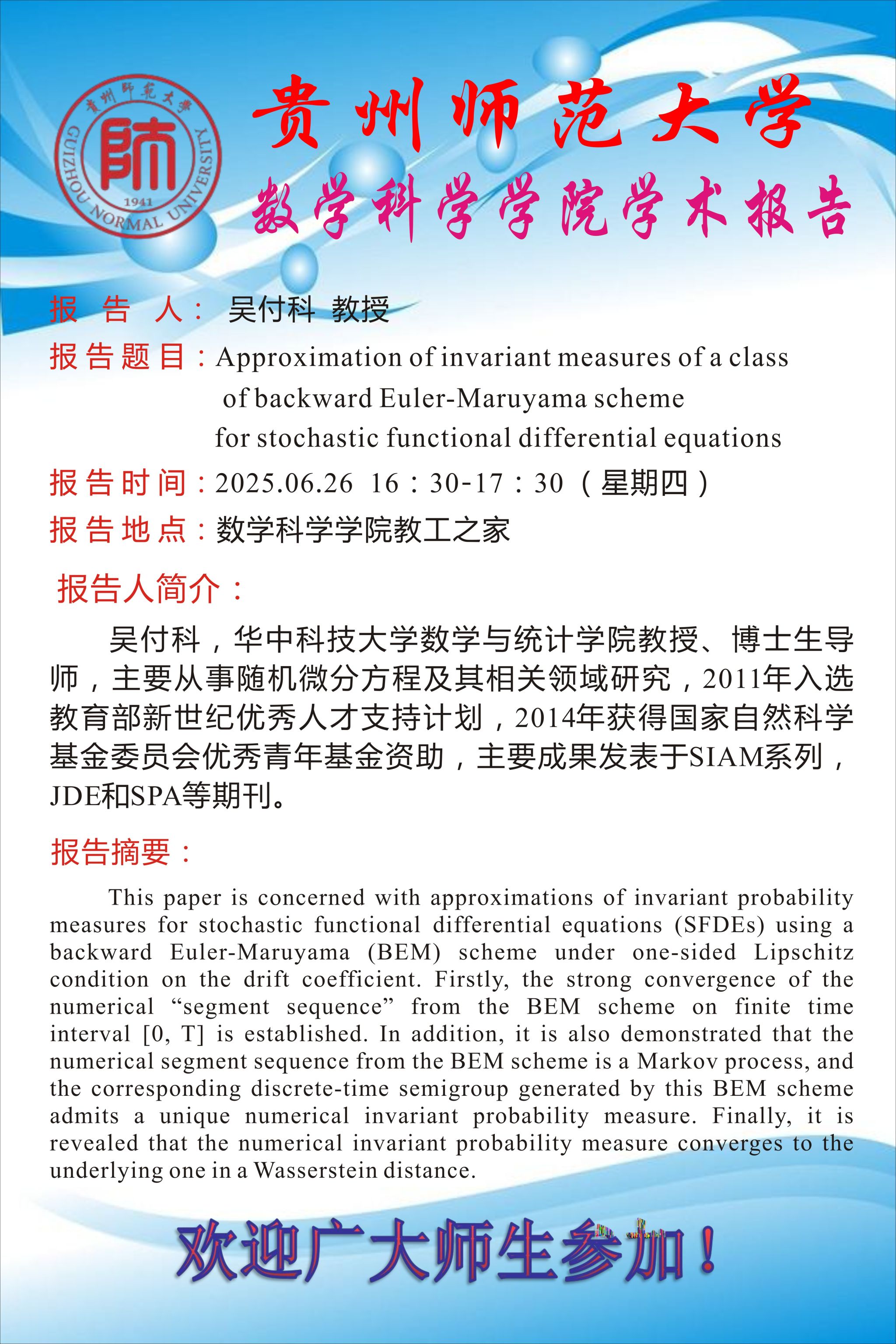 华中科技大学吴付科教授受邀为公司师生做学术报告