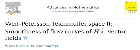 公司唐树安教授与合作者在国际数学重要期刊Advances In Mathematics(中科院一区top期刊)上发表了题为“Weil-Petersson Teichmuller space II:Smoothness of flow curves of H^3/2-vector fields ”的研究论文。