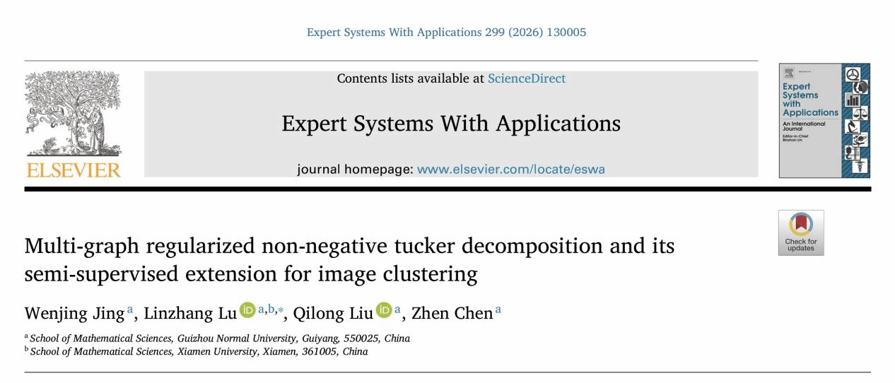 近日,公司伟德国际1946卢琳璋教授团队在人工智能领域1区TOP期刊Expert Systems With Applications(IF=7.5)上发表了题为“Multi-graph regularized non-negative tucker decomposition and its semi-supervised extension for image clustering”的研究论文。