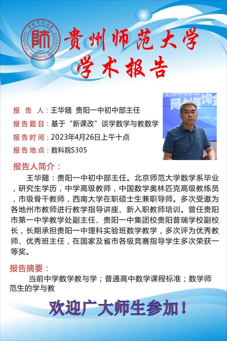 周晓军教授受邀赴贵阳六中参加数学学科研修活动