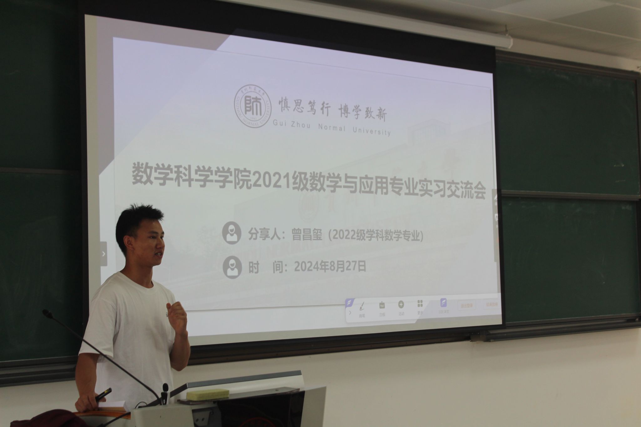 为推进2021级数学与应用数学专业师范生教育实习工作的顺利开展,为师范生对即将迎来的教育实习有一个整体而较全面的认识,伟德国际1946分别于8月27日、9月5日在伟德国际1946花溪东校区公共教学楼GJ3501、 GJ3401教室召开了2021级师范生教育实习岗前培训与经验分享会,数学与应用数学系主任彭艳芳老师、2022级学科教学(数学)专业硕士研究生曾昌玺、2024级学科教学(数学)硕士研究生邓婷婷、2021级数学与应用数学专业全体师范生参加了此次活动。