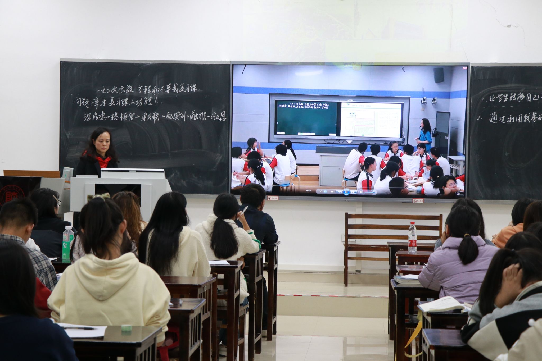 最后,两位老师在各自分享的后半段,都播放了中学数学优质课的视频,共员工观摩、讨论,并和全体员工一起分析了视频中的教学方法、教学策略、优势与不足等。