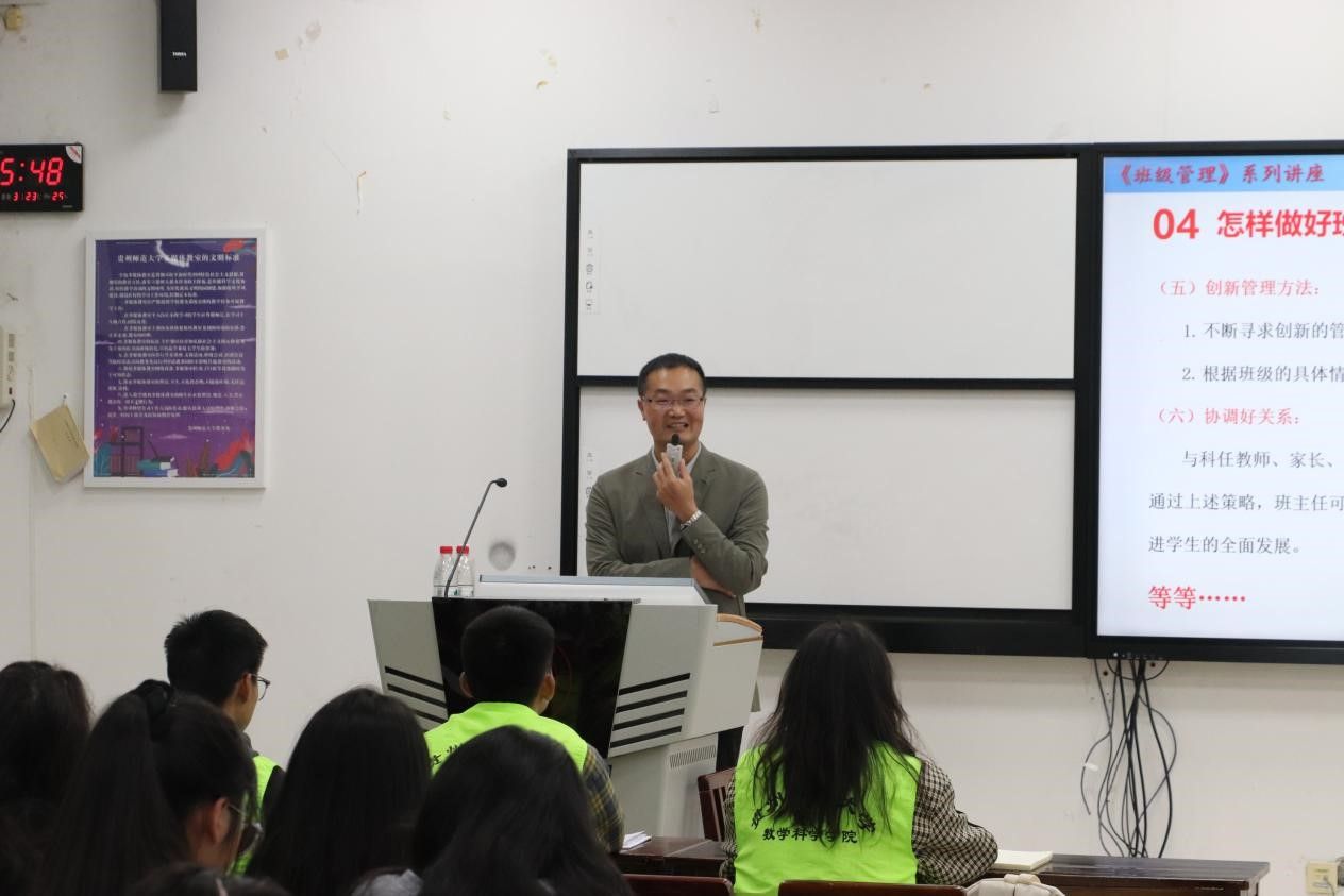 10月23日,伟德国际1946附属中学高级教师王开江于伟德国际1946花溪东校区GJ3211教室开启了"班级管理"主题系列讲座,2022级数学与应用数学专业全体员工参加了此次系列活动。