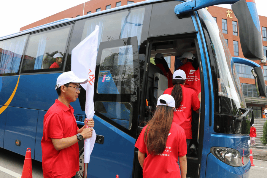 图为志愿者有序登车出发。 中国青年网通讯员 任艳供图