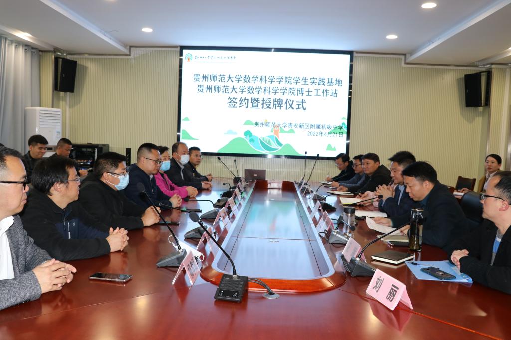 4月21日下午,伟德国际1946与伟德国际1946贵安新区附属初级中学共建“新时代基础教育强师实践基地”签约授牌仪式在师大贵安附属初中会议室举行。公司党政班子成员、数学教育研究所负责人,附属初中校领导、中层干部和数学组教师参加签约挂牌仪式。仪式由附属初中副董事长贺宁馨主持。